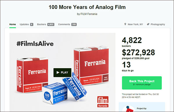 FILM Ferrania has taken roughly two weeks to raise funds through KickStarter pledges for rebuilding an analogue film factory in northern Italy.