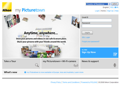 Nikon Corporation has extended its my Picturetown photo storage and sharing service to customers in Australia, Hong Kong and Singapore.
