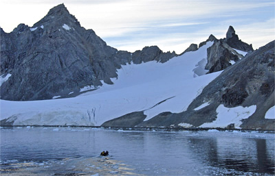 February 20, 2006: Today began early with a 6 am wake-up call for the intrepid souls who planned to climb Spigot Peak. This conical point rises up from the water roughly 300 metres and is backed by even taller mountains. The rest of us set off in Zodiacs for the much lower Danco Island, a 1.5-kilometre long land mass in the southern end of the Errera Channel. We had two objectives: observing gentoo penguins and climbing to the highest point on the island for a view over a spectacular part of the Antarctic Peninsula.