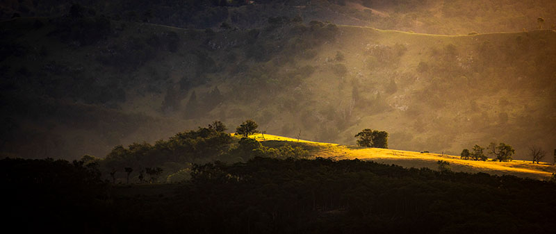 Shooting into the sun from Cahill’s Lookout in Katoomba looking into Megalong Valley was challenging. The dynamic range made a single shot hard to capture the shadow detail along with the very bright highlights. Some partial cloud cover provided much appreciated diffusion while still allowing the small hill to be illuminated.