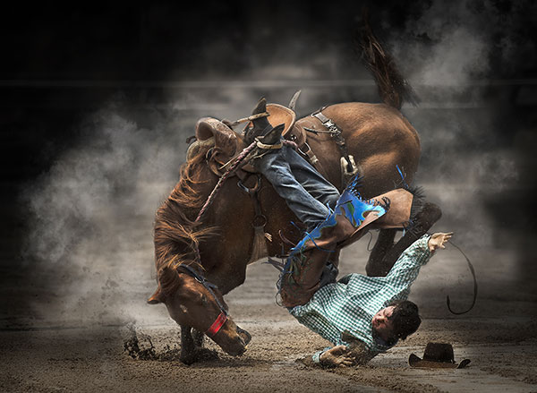 Love the rodeo at Warwick. Great opportunity for action shots, this one in particular with his feet stuck in the stirrups, horse and man eye balling each other…