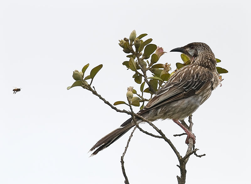 Wattlebird and bee