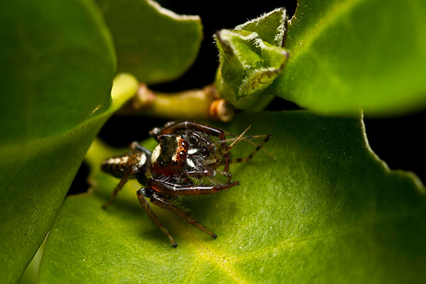 I often travel to the local Botanical Gardens as I find it provides a multitude of opportunities for macro photography. It is almost like attending a variety of climate types at once. I found this guy half way through a meal so luckily she/he wasn’t in the mood to be moving around too much. I used off-camera flash and focused on its eyes, using f/8 on my lens as this generally gives me the sharpest results and a reasonable depth of field. I added a vignette and did some layers adjustments and sharpening in Photoshop.