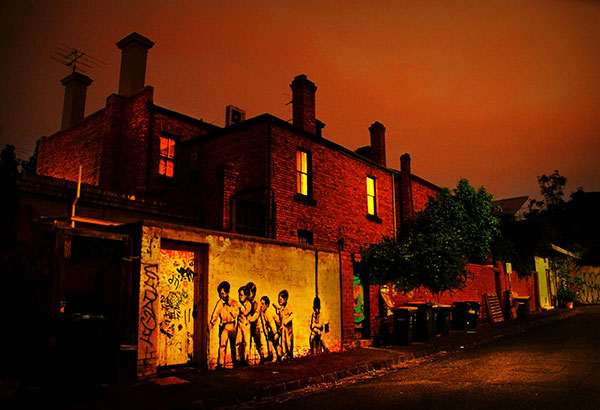 I was in Fitzroy (Melbourne) one evening scouting around the lanes for shots for my camera club competition. I found this scene in a lane. It was dark by this time but a couple of street lights provided enough light. Also light from the city was reflecting in the clouds.