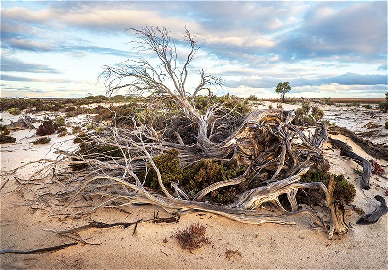 Lake Tyrrell, Victoria’s largest salt lake, is a shallow, salt-crusted depression seven kilometres north of the town of Sea Lake in the Mallee district of north-west Victoria. This location has become a popular destination to photograph the lake’s mirror-like surface during winter, when groundwater percolates to the surface and inflows arrive from the Avoca River/Tyrrell Creek system.