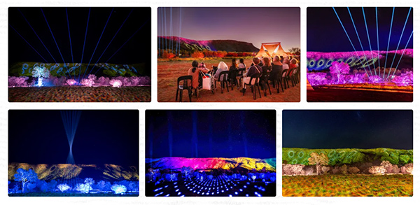 The iconic Ranges Light Show will be on display on the 300-million-year-old natural canvas of the MacDonnell Ranges for the full 10 nights. (Source: Parrtjima.)
