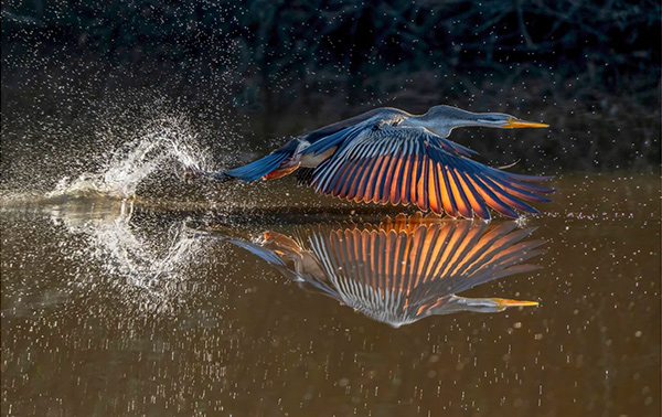 ‘Upon reflection’ by Jacqui Davey, one of the finalists in the Birds in Flight category. This photograph of an Australasian Darter was taken on the Wingecarribee River near Bowral, NSW. © Jacqui Davey.