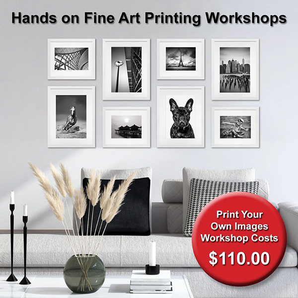 Each participant who registers will learn to print their own images using the latest Epson Surecolor A2 P906 Desktop Printer, combined with genuine Epson inks, state-of-the-art printer profiles and a curated selection of premium fine art papers. Editing and soft proofing will be carried out on industry-leading Eizo ColorEdge monitors to ensure colour accuracy and consistency throughout the workflow. Participants in these workshops will leave with beautifully finished prints and a clear understanding of a professional fine art printing workflow. Each workshop runs for approximately two and a half hours and costs $110. The maximum class size is 16 people so limited spaces are available. Click on the links provided in the time slots are as follows: