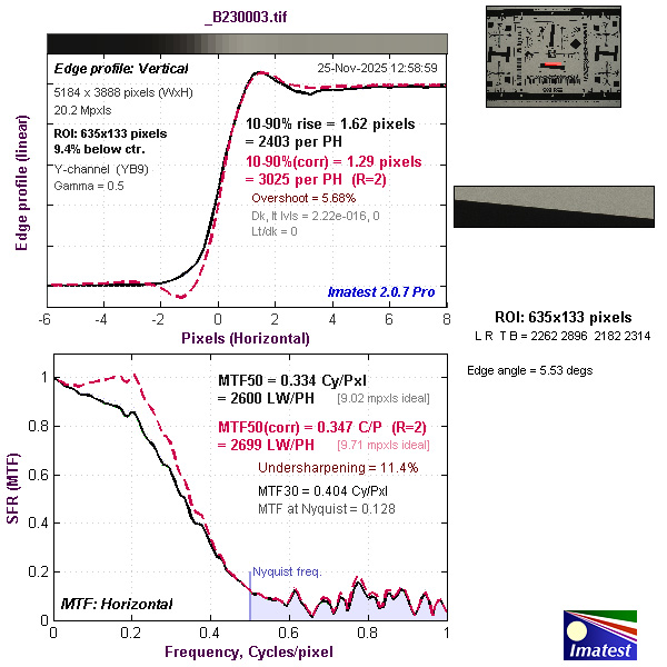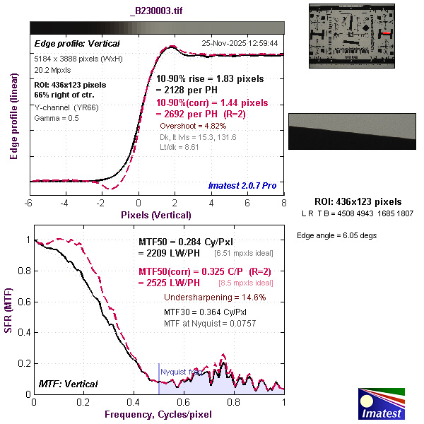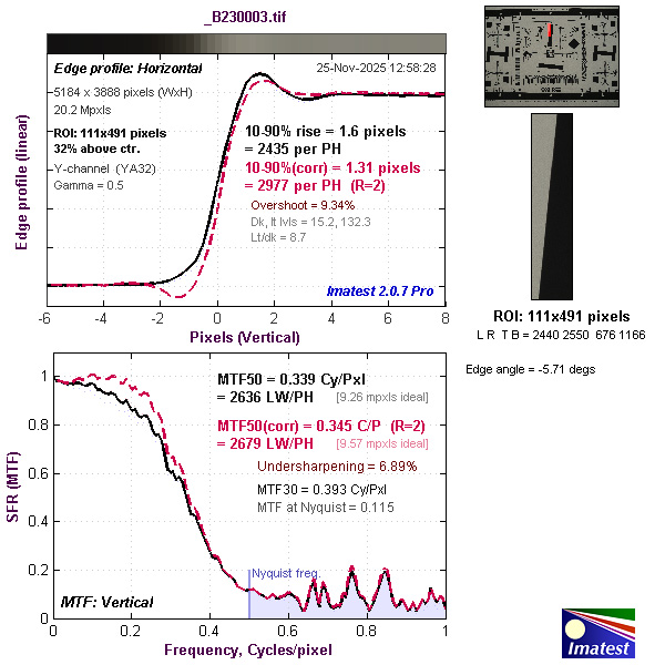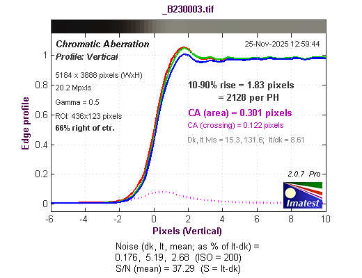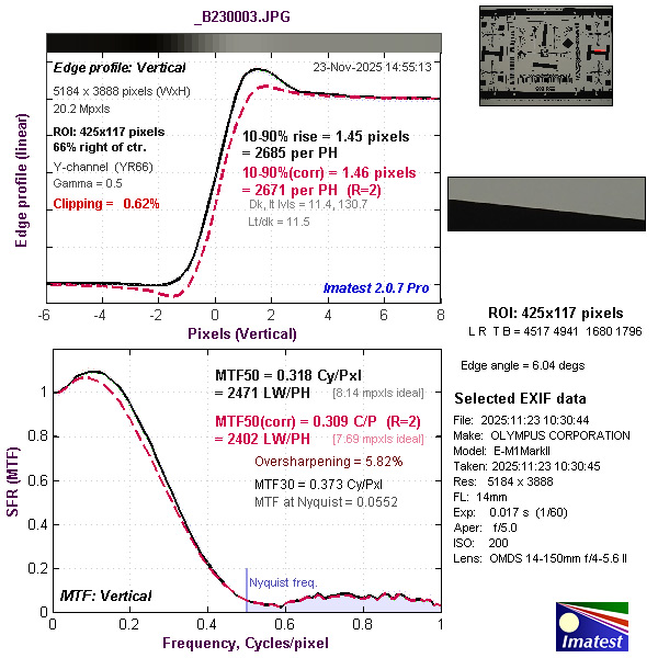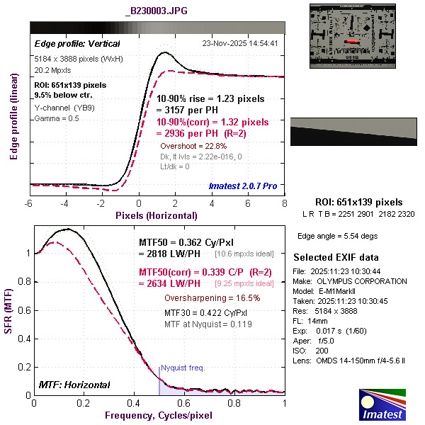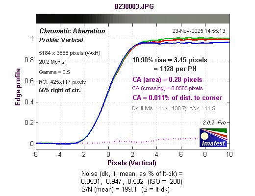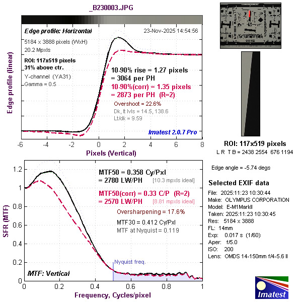 Since OM System cameras apply corrections automatically to JPEG files and similar corrections are applied to raw files in Adobe Camera Raw, we had to evaluate the most common aberrations by using an image viewer that didn’t apply corrections. We were unable to find evidence of significant chromatic aberration – and our Imatest tests showed any issues that existed were effectively addressed.