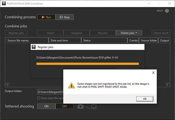 Unfortunately each of the four multiple shot sequences we recorded produced the same result as the screen grab shown above and, with the minimal information provided in the software we had no way to get the images to combine.