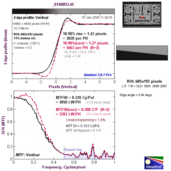 This puts it on a par with the sensor in the Sony α7 IV and provides an increase of approximately 16% in linear resolution. Although the chip in the α7 IV is back-side illuminated and should be a tad more efficient, it’s been around for a few years – the α7 IV was launched in October 2021 – so there’s a slim possibility Canon may have made up the deficiency in some way, since both companies make their own sensors.