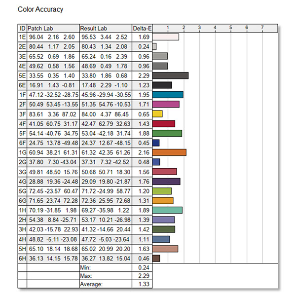 Colour accuracy: △E< 1