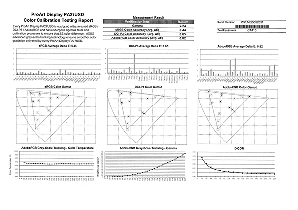 The PA27USD comes factory pre-calibrated showing coverage of the main colour spaces in use by professional photographers and videographers and claims an average Delta E value of less than one for outstanding colour accuracy. A detailed report of the factory testing is included with each screen.