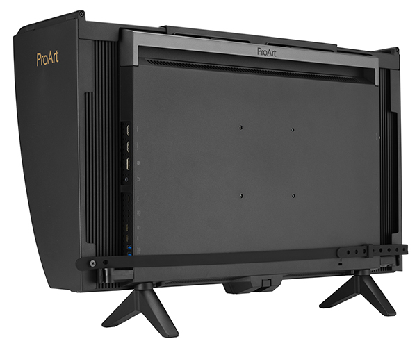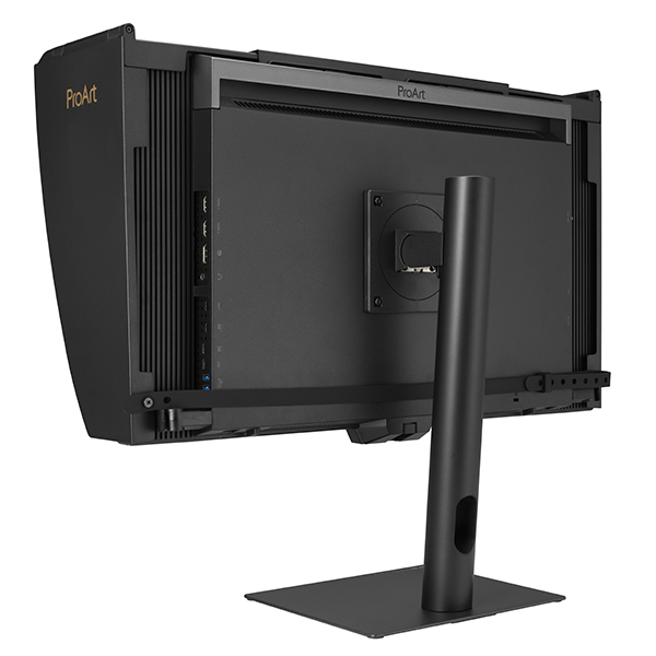 ASUS ProArt Display PA27USD on the supplied stand with the bundled shading hood installed. (Source: ASUS.)