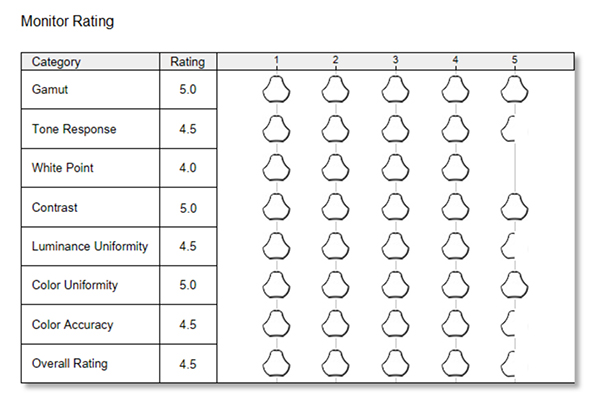 The ‘before’ (top) and ‘after’ (below) displays produced by the SpyderX Elite 6.2 show the effects of calibration. The close similarities between these displays showed the PAUUSD ships with very good colour settings.