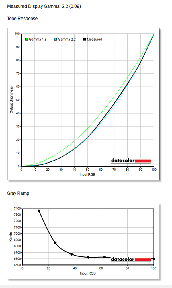 The graph of the measured gamma (above) shows it to be very close to 2.2, the recommended gamma for image editing with Windows PCs; a very good result. The grey ramp is also relatively smooth with very slight unevenness towards the higher values.