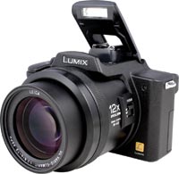 Available in black or silver, Panasonic’s Lumix DMC-FZ5 sports the same Leica 12x optical zoom lens as its successful predecessor, the DMC-FZ20 but, unlike the FZ20, it cannot maintain the f2.8 maximum aperture throughout its full zoom range. With a plastic body that is almost identical to that of the 3-megapixel FZ3, the FZ5 is smaller and roughly 40% lighter and 20% cheaper than the FZ20. The FZ5’s body is well made and feels comfortable in the hands.