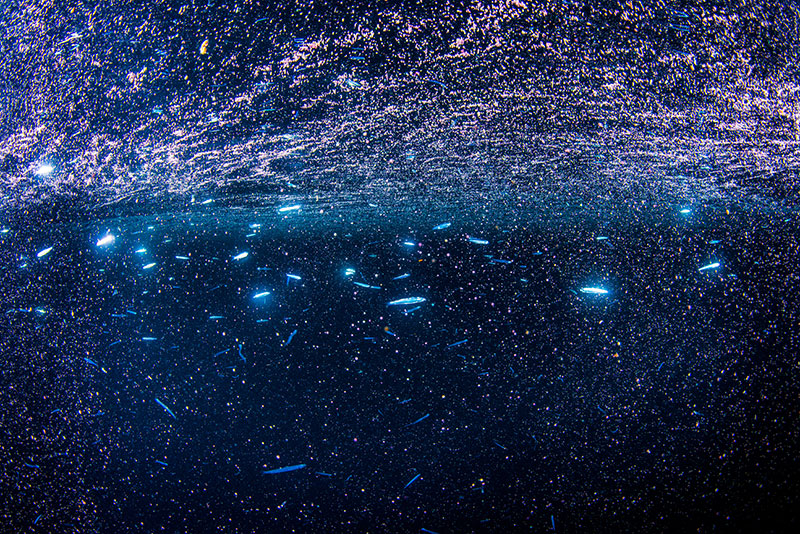 Actually, I run a pretty lean kit. Two Nikon D850 cameras with a 300mm f/2.8 and 70-200mm, 16-35mm, 24-70mm, and 14-24mm zooms, plus 60 and 105mm macros. For the underwater housing kit, it’s a D800 with an 8-15mm in a Nauticam housing. I have flash units (strobes), but almost everything I do is available-light.