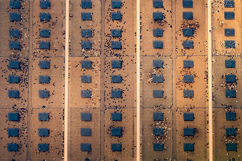 Aerial, cattle feeding lot, Millmerran, southern Queenland.