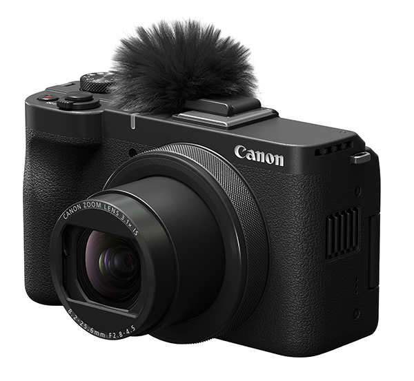 Another vlogging camera, the PowerShot V1 has a slightly larger-than-average 18.4 x 12.3 mm 22-megapixel Dual-Pixel CMOS AF II sensor and a 16-50mm equivalent f/2.8-4.5 zoom lens with a claimed 5 stops of optical IS. Without a viewfinder, framing of shots is done on the 3-inch vari-angle LCD, which has a resolution of 1,040,000 dots. Users can record 4K video at up to 60 fps with a 1.4x crop or full-width 4K at up to 30p from 5.7K capture. They can also utilise Canon Log 3 and additional Movie Electronic IS for recordings. The multi-function hotshoe accepts optional lights or audio accessories and the camera has headphone and microphone ports.