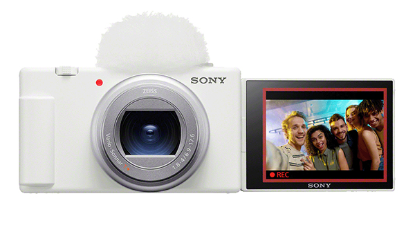 Available in black or white, Sony’s ZV-E1 vlogging camera comes with an 18–50 mm equivalent f/1.8-4 wide-angle zoom lens and a 20-megapixel 1.0-type (13.2 x 8.8 mm) Stacked CMOS sensor. A built-in 3-stop ND filter provides added control over exposure parameters. Compact and portable, the camera boasts Fast Hybrid autofocusing with human and animal subject recognition. There is no viewfinder but the camera sports a 3-inch vari-angle LCD touch-screen monitor with a resolution of 921,600 dots. Special features include a Bokeh Switch and Product Showcase Setting.