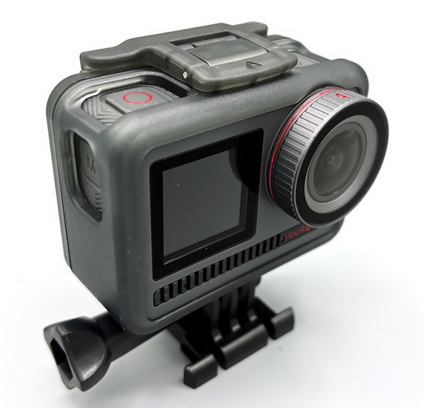 DJI’s newest Osmo action camera comes with a Type 1/1.3 (12 x 9.6 mm) format image sensor that can record stills at up to 40-megapixels (maximum 7296 x 5472) or 4K (16:9) resolution at up to 120 fps. The sensor can record 13.5 stops of dynamic range, while the fixed lens covers field of view of 155 degrees with an aperture of f/2.8 and 35 cm to infinity focus. Up to 2x digital zoom is available for both stills and movies with burst shooting at up to 30 fps for stills. Time-lapse shooting is not supported but 4K movies can be recorded at up to 120fps for slow-motion playback. The camera supports HDR video recording up to 4K/60p and includes 10-bit D-Log M and 10-bit HLG modes. Its SuperNight mode uses noise reduction algorithms for sharper, cleaner footage in extreme low-light. Up to 3 stops of electronic image stabilisation is available and the camera has a pre-recording mode that can record 5/10/15/30 seconds for 1/2/5 minutes.