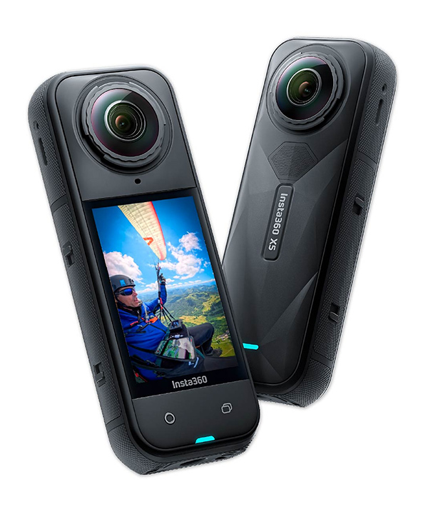 The Insta360 X5 comes with a large 2.7-inch touch screen display that is bright enough for outdoor use. It has a MicroSD card slot, two built-in microphones and a rechargeable battery that can support up to 93 minutes of 8K/30p recording or 208 minutes of 5.7K/24p footage in Endurance Mode. Special video recording modes include PureVideo, InstaFrame, Timelapse, TimeShift, Bullet Time, Loop Recording and Road Mode and Vivid, Standard, Flat and I-Log colour profiles are available. Two Wind Noise Reduction settings are provided, along with Wi-Fi, Bluetooth and USB-C connectivity. It also comes with editing presets plus an intuitive app and many compatible accessories. The camera body is available in black or white. It measures 46 x 124.5 x 38.2 mm and weighs 200 grams. The local RRP for the ‘Standard bundle’ is $929.99.