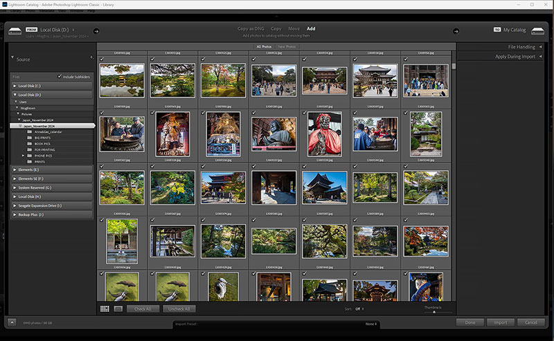 Combined image editor and file management applications like Adobe Lightroom Classic (shown here) automatically find image files and folders anywhere in your computer and catalogue them. As new images are uploaded, they are added to the catalogue, usually filed by the date they were uploaded or the date on which they were taken. This should make them easy to locate – depending on how you like to work.