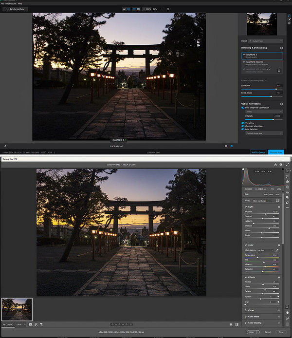 These two screen grabs show how raw file processors differ between software developers. The top one is the interface from DxO PureRaw 5, which was developed by DxO Labs, which specialises in image analysis. The lower one is from Adobe Camera Raw and contains the full tool set available to Photoshop users. (Photoshop Elements users get a reduced tool set.)