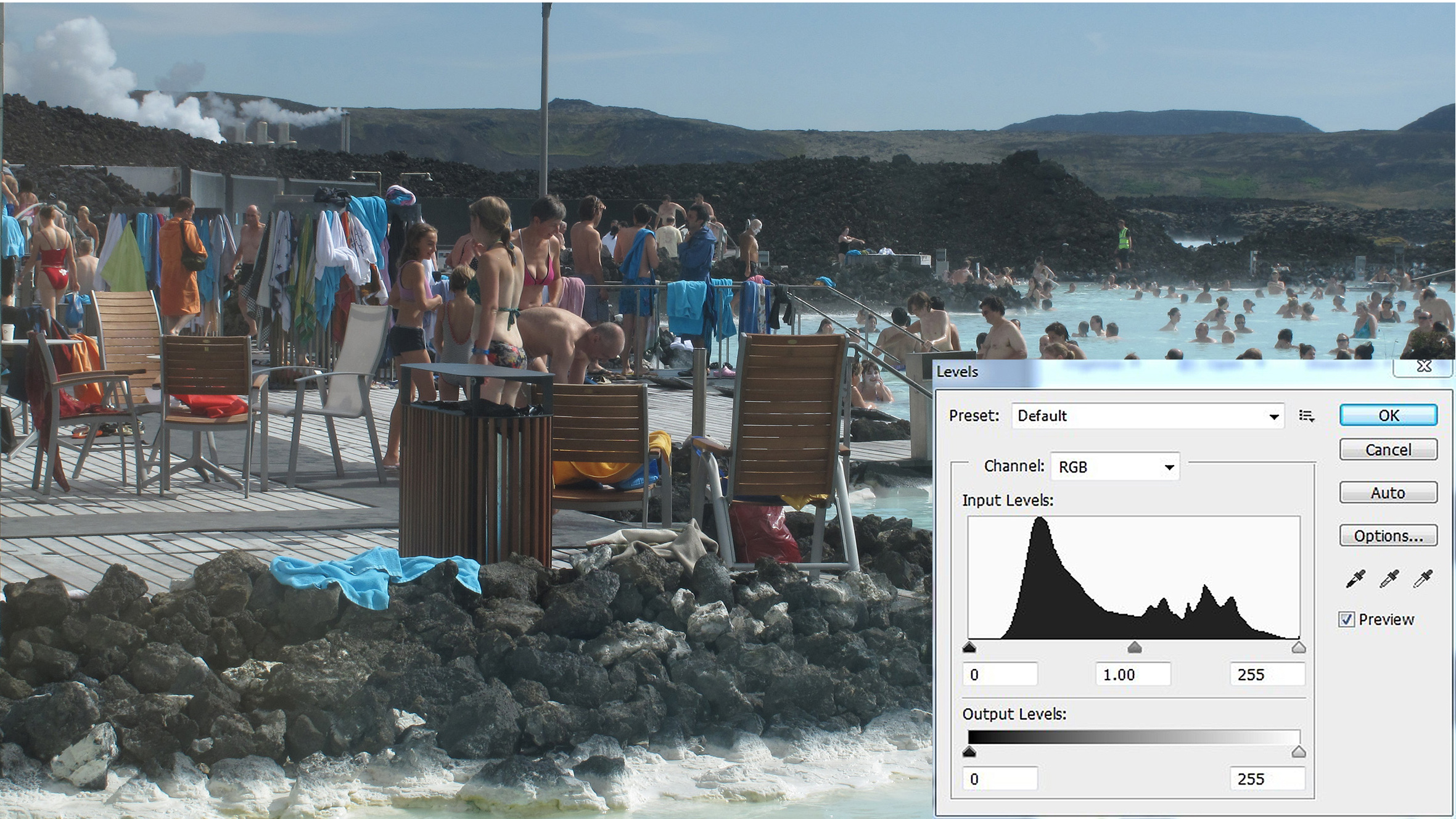 Using the Levels tool in your image editor to adjust image tones and contrast.
